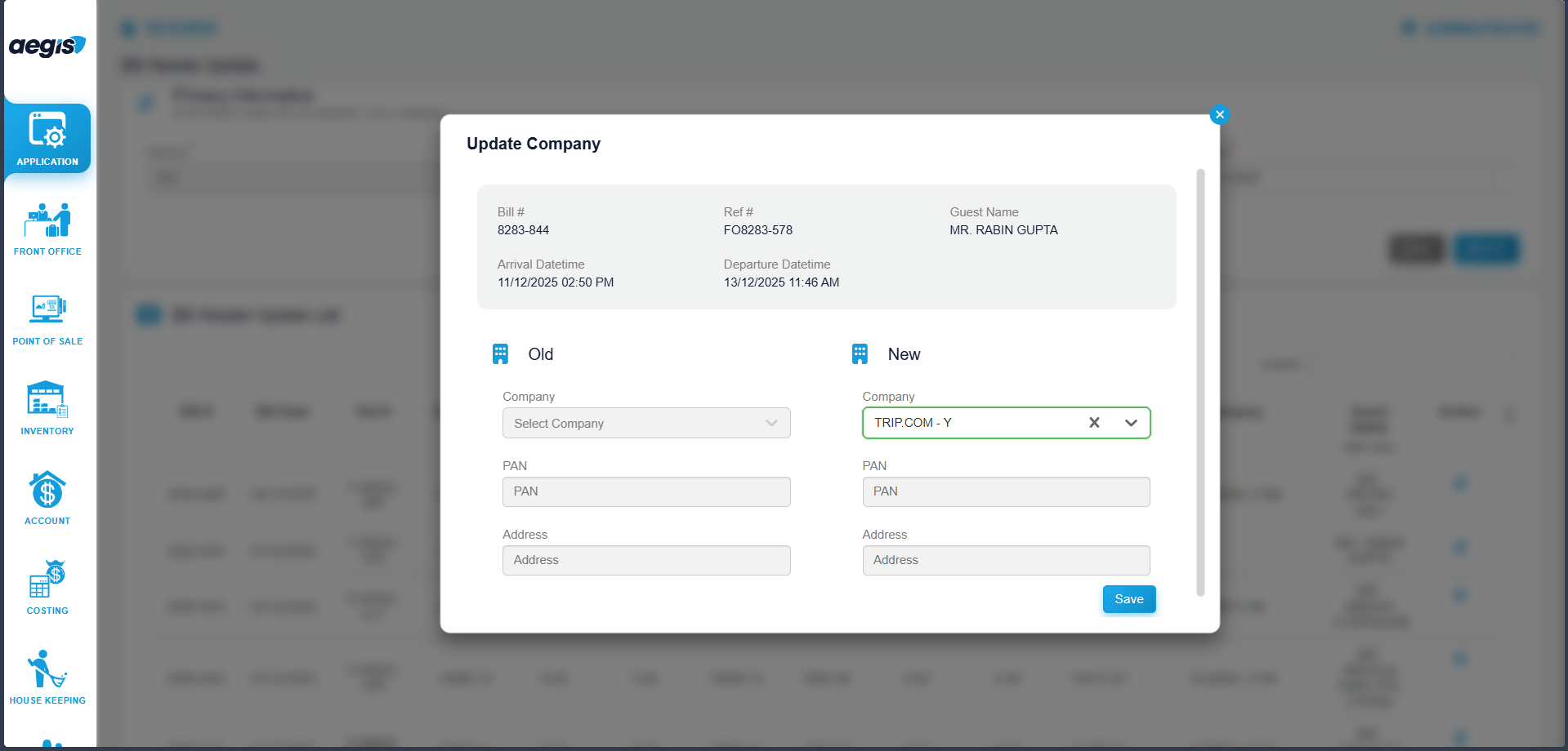 The Bill Header Update feature in Aegis Software allows authorized users to update or remove the Company Name displayed in the header section of billing documents and invoices. This ensures that invoices reflect the correct company identity for printing and official use.