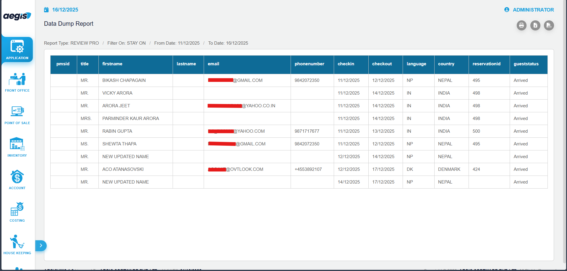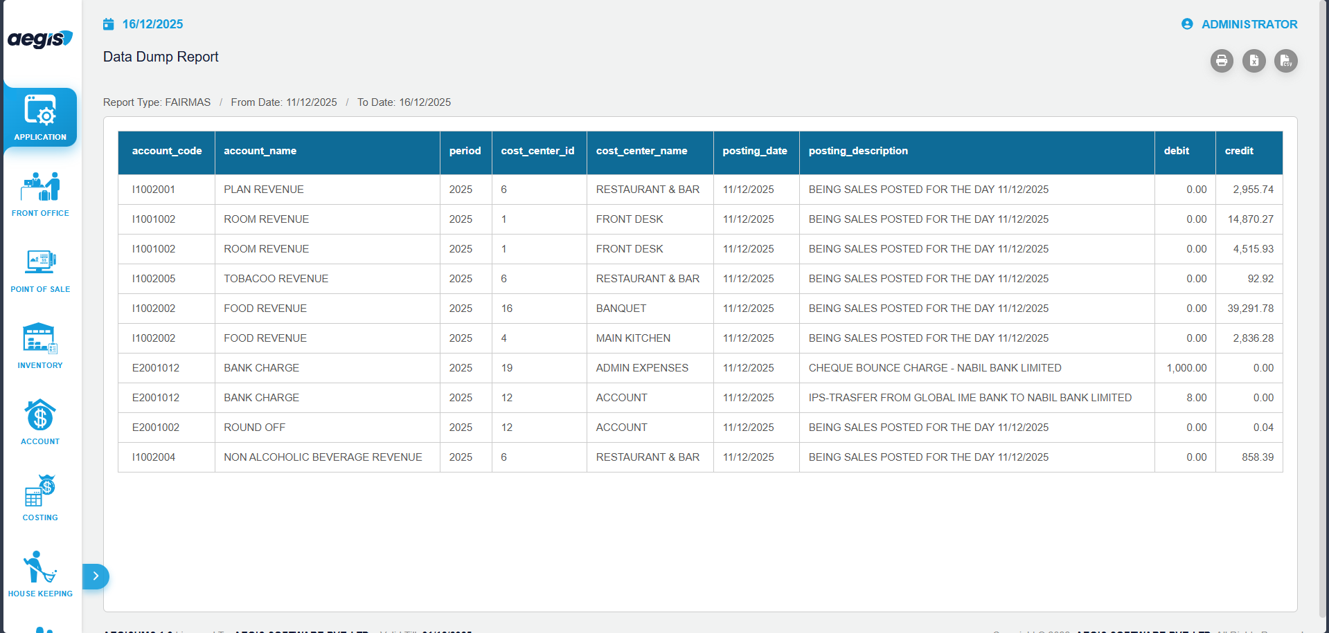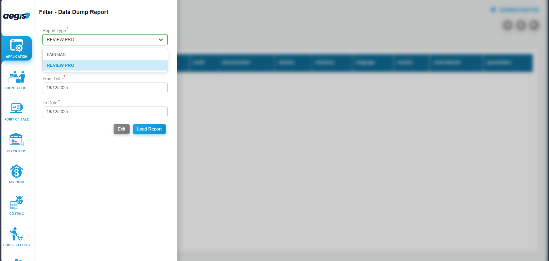 The Data Dump Report in Aegis Software is a data export utility used to extract large volumes of system data in a structured format. This report is primarily used to export data for ReviewPro and Fairmas systems for analysis, reporting, and business intelligence purposes.